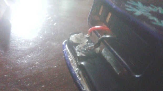 Ahora, si usted tiene una vieja caja de la pc probablemente también un un ventilador que se puede romper para recuperar piezas útiles, ha sacar el pin del último de ellos y hacer una conexión "elástica" que encajan con lo positivo y negativo de la batería (los extremos de 3 placas que encuentres en ese tipo de batería [BL-5CA]). Con electricl cinta aislar la bandeja superior y usar el pegamento caliente para pegar en su lugar, acordarse de tomar la medida correcta antes o no hacen contacto, un poco complicado pero puede dibujar cerca de la tapa y utilice un tornillo para hacer alguna pequeña marca en la cinta, luego cerrar la lata y agregar o quitar algunas pelusas en la parte inferior hasta la batería encaja perfectamente.