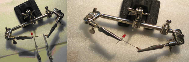 Mi técnica de soldadura es de suma importancia a la fuerza bruta. Los disipadores de calor de soldaduras se utilizan para proteger el LED y el resistor, se calientan los cables expuestos arrastrando el hierro y una cantidad mínima de soldadura es arrastrada por la zona de Unión. Esto parece asegurar una buena unión sin dejar picos o pináculos.