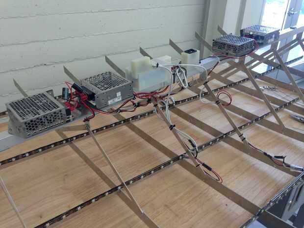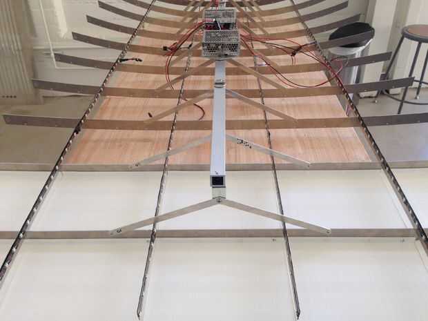 Una de las mejores cosas sobre el uso de impresiones 3D de estilo FDM desde un serie 1 impresora 3D para construir muros en la traslucidez del material. Este material de calidad permite elementos interactivos y performativos para integrarse en los sistemas de superficies de las piezas. En primer lugar, nos topamos con este fenómeno con nuestra estructura de Echoviren en el proyecto 387. Para nuestro trabajo en masa Liminal decidió integrar un controlador de mico y tira de iluminación de LED directamente en la pieza. Este sistema se sería controlado por un control remoto de RF por lo que el usuario puede controlar los modos y modelos de interacción con la pieza.