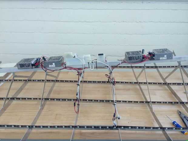 Después de conectar el sistema y probarlo se realizó, hubo un inaceptable nivel de caída de potencia en toda la franja. Por suerte tuvimos la conexión de la energía central para que sólo estén soldadas en puentes para conectar el circuito de potencia al 50% y 100% posiciones del circuito de potencia en los LEDs. Con ese toque final los LEDS está listos para ir!