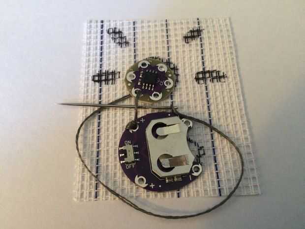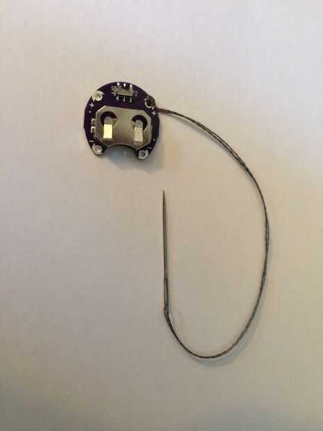 - Hilo de aguja, sobre la longitud de los brazos. El kit de Sparkfun tiene una bobina que proporcionaría suficiente hilo para hacer este pequeño proyecto muchas veces. No se escatima, pero no lo hacen demasiado largo.