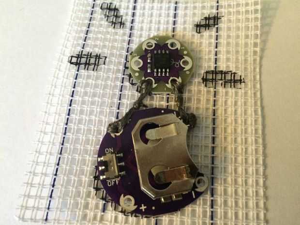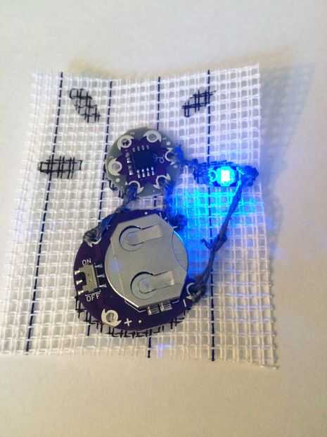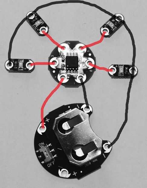 - conectar más de pad de batería a + en Lilypad Twinkle (mesa redonda).