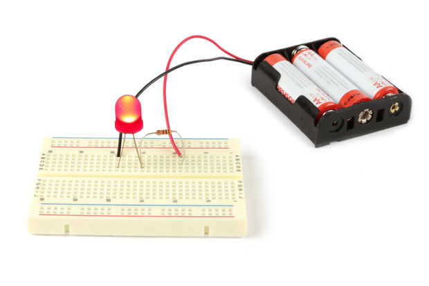 Low behold, el LED iluminó una vez más. La resistencia de 150 ohm dejó bastante de los 4.5V alimentación llegue a la 1.7V llevado que él iluminó con seguridad y lo guardado queme.