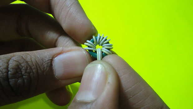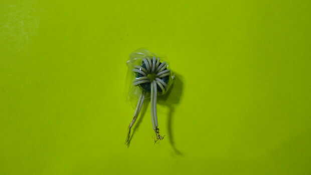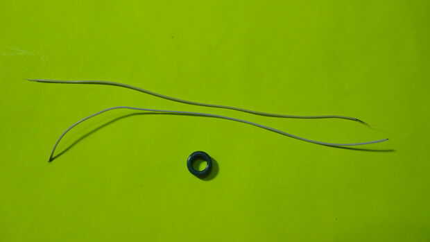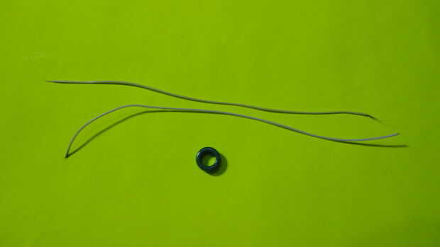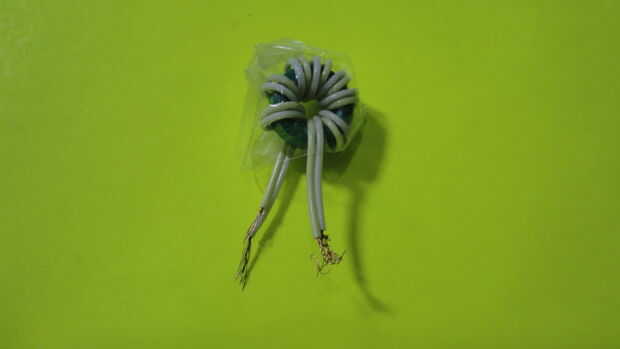 Entonces comienzo rodando los cables redondo el toroide de ferrita alrededor de 7 a 8 veces.