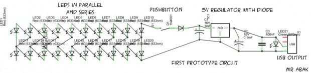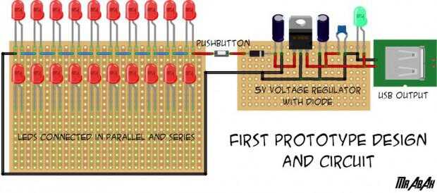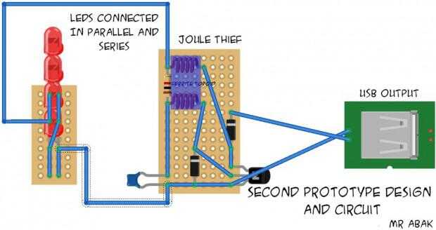Después de primer prototipo había fundada algunos cambios y luego desarrolló enteramente nuevo circuito con LEDs mínimo y componentes mínimos. ¿Pero lo que si no hay ninguna luz del sol alrededor de? Para encontrar esta respuesta se realizó otro prototipo.