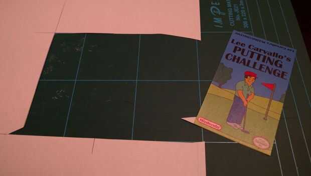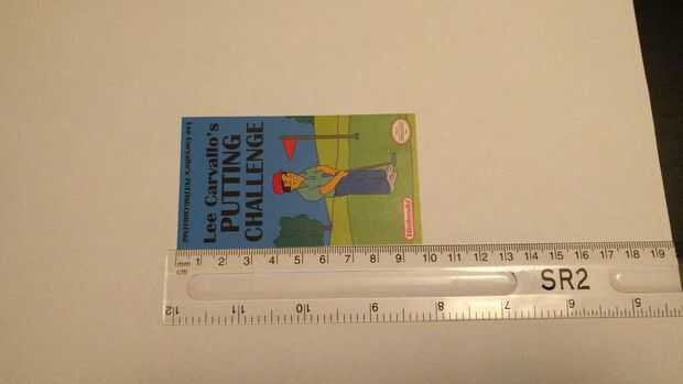 Compruebe que la etiqueta es de tamaño correctamente. Las medidas de una etiqueta NES son 55mm de ancho y 97mm de alto. Ahora corte la etiqueta de la cinta adhesiva y tratar de redondear las esquinas para que coincida con el área de etiqueta de cartuchos. Otra vez usé un cortaúñas para hacer esto. ** Nota Si no encuentra papel adhesivo a usar normal spray y papel adhesivo **. He dejado una pequeña pestaña en el lado para pelar el forro.