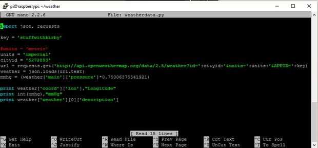 Entré en "sudo nano weatherdata.py"