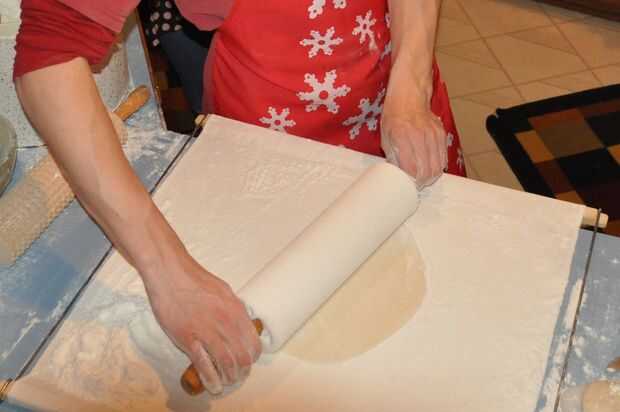 Rodillo hacia fuera el lefse en círculos delgados.  Asegúrese de tirar primero un poco de harina para que no se pegue.