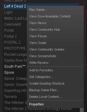 • Click derecho en Left 4 Dead 2 en tu biblioteca de juegos y haga clic en propiedades