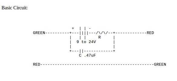 Tenga en cuenta que el valor de la resistencia depende de la tensión de corriente utilizada. Para 24V alrededor de 1K ohmios máximo dará a más 24mA (12V a 500 ohmios, 9V @ 380 Ohms); la resistencia del circuito del módem esto reducirá un poco (puede que necesite reducir el valor de la resistencia, pero si trabaja con los valores mencionados, dejarlo en eso; Estoy usando 380 Ohms con una entrada de voltaje de 14V). La compañía telefónica garantiza sobre 20mA mínima en una línea de teléfono real y nosotros queremos ser sobre el mismo mínimo. Tenga en cuenta también que la batería que se muestra puede ser sustituida por una fuente de alimentación de la "fuente"; la mayoría de estos son no regulada (mi "9V @ 130mA" enchufe CC da sobre 14V en este circuito cuando se conecta a del telepone para probar) y en consecuencia se necesita un condensador electrolítico de unos 2200 uF a través de la alimentación + - terminales y reducir la tensión de "onda" (es decir, AC "ruido"); Asegúrese de hacer coincidir la polaridad del electrolítico a la polaridad de la fuente de alimentación.