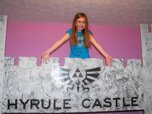 En nuestra casa, somos grandes fans de The Legend of Zelda. Mi nieta no es una fan de Disney de la princesa, cuando yo estaba diseñando su dormitorio decidí construir alrededor de Legend of Zelda. La cama es tan genial que he tenido adultos me pregunta uno de ellos! La cama es una litera. Así que ella siempre tiene una cama extra cuando los amigos vienen a visitar. El castillo es de MDF y unido al marco de la cama de cucheta. Con este diseño que se podría construir cualquier tipo de cama temática, fuego camión, transformador, etc..