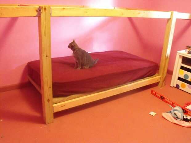 Después de que usted tiene las esquinas hechas, utilizando una suspensión de viga añadir su riel de soporte frontal. En este momento, necesitará agregar en su apoyo contabilidad y marco para la cucheta inferior utilizando el mismo método que utilizó para construir el soporte superior. Asegúrese que el colchón en la zona. También utilizamos bunkies para añadir a la fuerza de la cama.