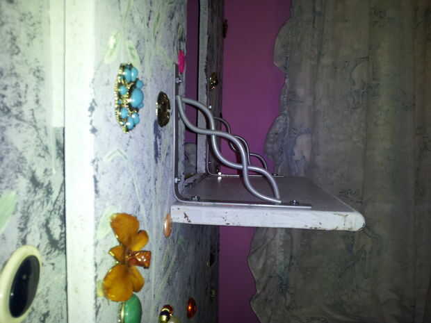 Puesto que su gato le gusta dormir con ella que tuve que hacer una manera fácil para el gato llegar a la litera de arriba. Encontré estos soportes de estante genial que como cadena y la ventana de"sorteo".