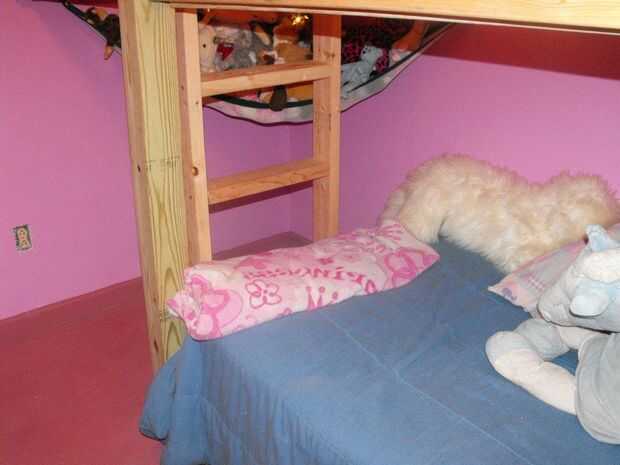 La escalera fue construida de 2 x 4 y atornillar en los 4 x 4 para la estabilidad. Y soportes en L para fijar a la estructura de la litera de arriba.