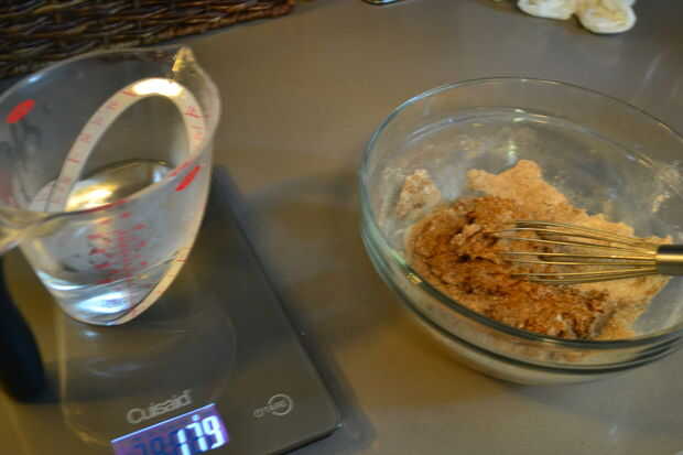 Mientras que se duplica ese fermento poolish/lúpulo antes, hacer un "zavarka". Se trata de una pasta de masa escaldada que es tradicional para las recetas de pan escandinavo. Para hacer este zavarka pasta, mezclar 60g de harina de centeno, 30g de Malta de centeno rojo y 60g de agua a 140 grados C (caliente pero no hirviendo - usted puede hacer al combinar el agua hirviendo con agua fría). Mezcla en una pasta suave.