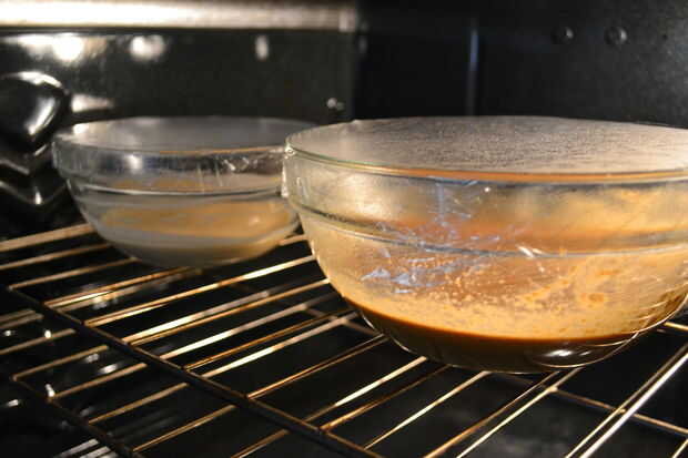 En una corriente lenta pero continua, añadir 180g ebullición agua mezclando constantemente hasta que se combinan. Que esta masa se siente durante 5-6 horas. Puede plop lo justo al lado de su preferencia.