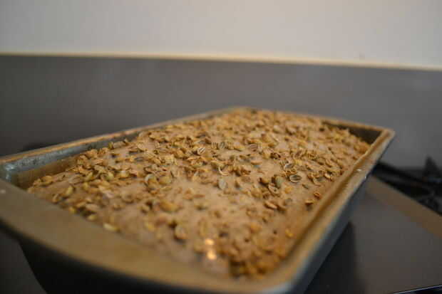 La mezcla boltushka se asegurará de que la semilla se adhieren a la parte superior del pan.