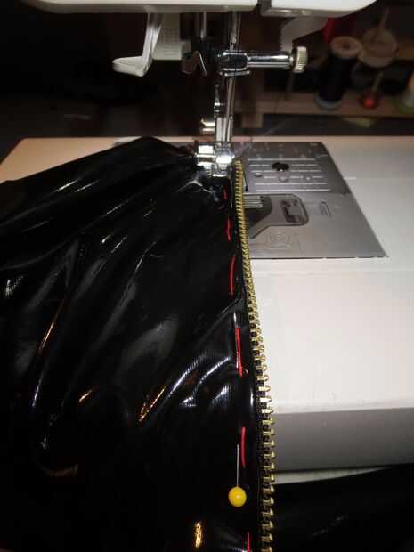 Coser la cremallera. Retire los pasadores al mover más lejos a lo largo de la cremallera.
