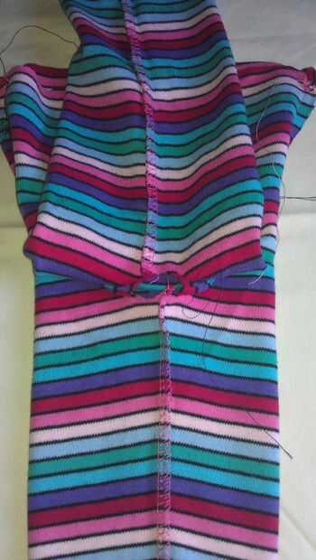 4. coser el agujero dejado en el centro de la entrepierna cerrada, siguiendo la curva.