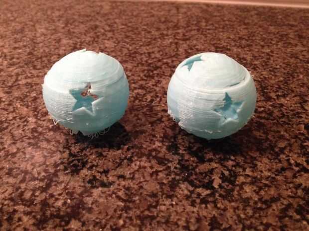 Después de imprimir el hueco bal dos veces, me di cuenta de que el filamento impreso permanece líquido mucho tiempo durante la impresión. Especialmente en voladizos y puentes. Resultando en un bal oval en lugar de una ronda de bal.