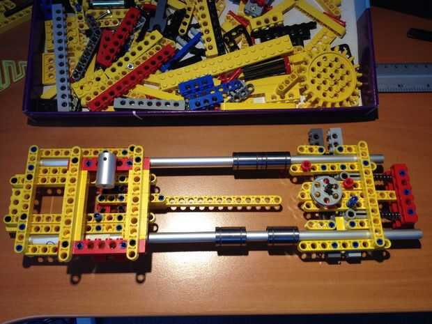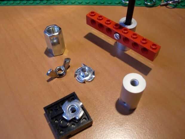La ventaja de usar LEGO es la posibilidad de modificar la impresora después de la construcción. Uno de los problemas encontrados durante la construcción fue conectar el eje z a la varilla de 5mm de rosca. Esto se soluciona comprando varios artículos en la tienda de hardware. Terminé con un "Taco hueco metal" (imagen).