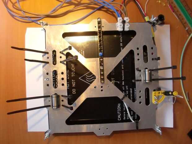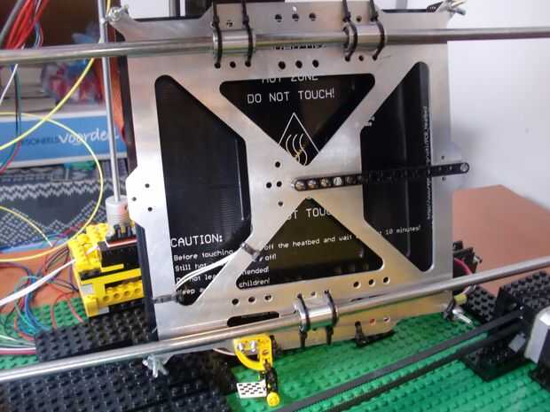 Después de construir la base determinamos la distancia entre las barras lisas para el eje Y. El carro Y coloca el cojinete de LM8UU con una distancia de 170mm. Esto da 21,25 espárragos. El perno de 1/4 se resuelve mediante una conexión suave ajustable de roth (segunda imagen). El agregado cerca da la distancia necesaria. Uso 4 manejar ladrillos para la colocación de las barras lisas (tercera imagen). Altura total de los titulares es 4 ladrillos (el carro Y se mueve sobre el motor paso a paso). Las varillas son de 50 cm y se unen con bandas de telar (últimos 2 cuadros).