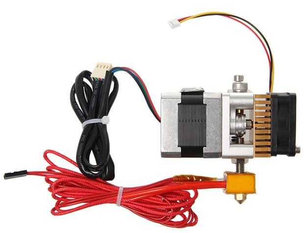 El Geeetech montado MK8 extrusora tiene un tamaño de boquilla de 0,3 mm por defecto y utiliza filamento de 1.75 m m. Viene con un motor paso a paso. He elegido este estirador debido a su tamaño. Tiene el tamaño de un paso a paso de Nema y es plano en la parte inferior.