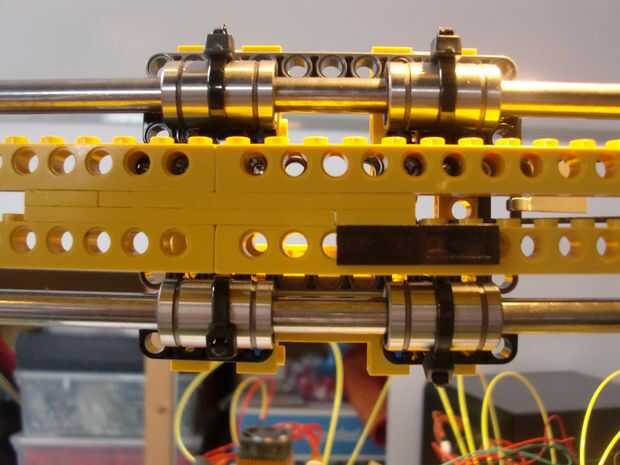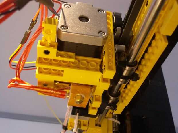 El estirador de transporte utiliza los mismos rodamientos de LM8UU como los otros ejes. La cuarta imagen muestra el real construido sin extrusión. Las últimas 3 imágenes muestran detalles del extrusora-transporte. A partir del titular de la cinta azul. Éste utiliza la misma técnica de conexión como el eje y. Este es más pequeño porque tiene que encajar en el carro y el eje x.