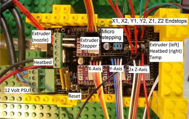 Ver reprap.org, construir una impresora 3D de Prusa i3 o botbuilder Prusa I3 construcción guía para conectar toda la electrónica.