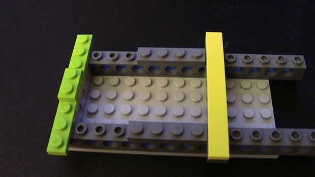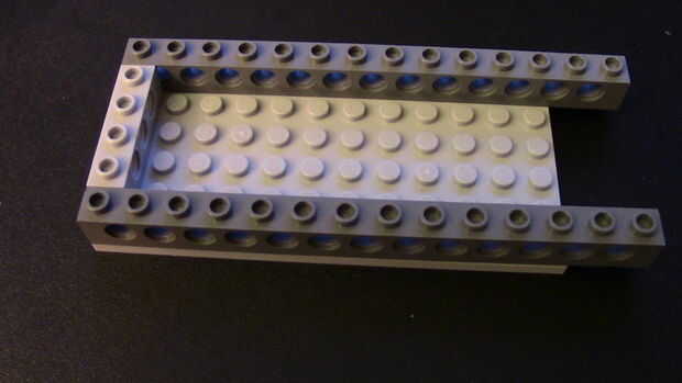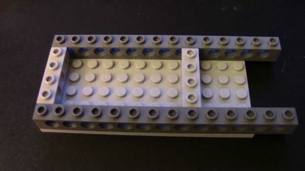 Para las piezas circundantes tienes que usar esas piezas agujereadas. Las baterías tienen un área de 4 x 7 así que tienes que poner las piezas de lado alrededor de él. Asegúrese de que utilizar las piezas agujereadas porque estará poniendo cableado a través de los agujeros. Después de la zona que rodea las baterías se colocan, tienes que usar pedazos más finos para reforzar en la parte superior.