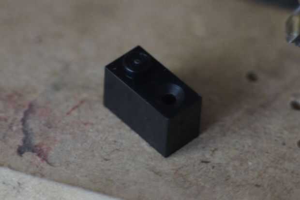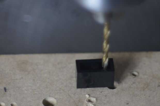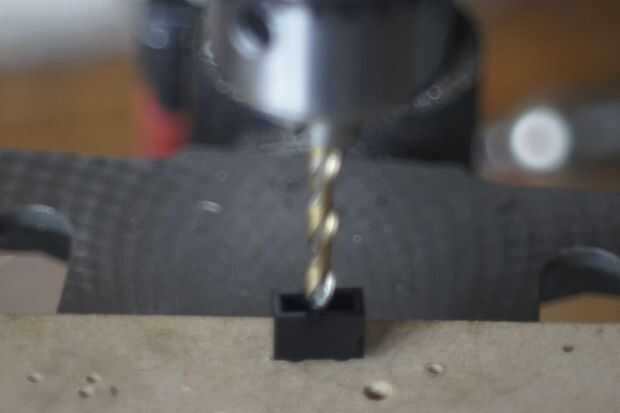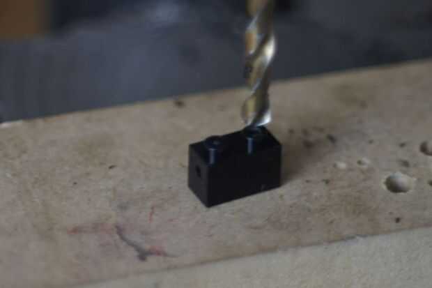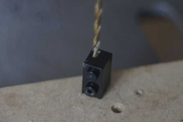 - Poner boca abajo el ladrillo y perfore a la viga que está en el ladrillo, con una broca de 4,5 mm.