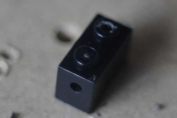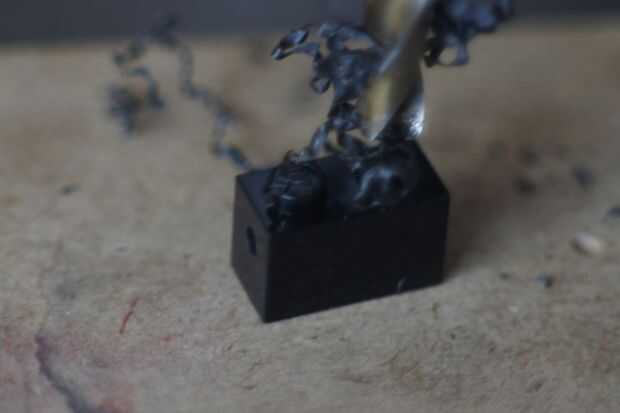- Perfore un agujero de 2,5 mm en el lado del ladrillo en el lado donde no taladre el agujero en el perno.