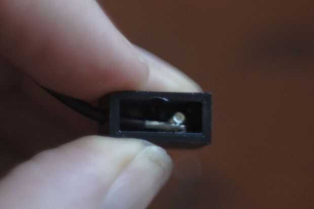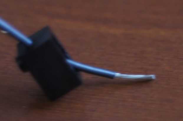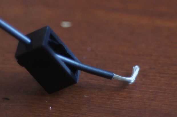 - Meter el canal de cable pelado el agujero de 2,5 mm en el lado del ladrillo de 2 x 1 negro