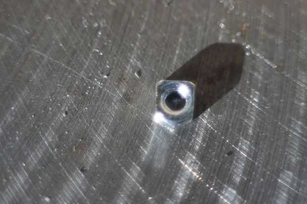 Primero tenemos que hacer algunos ajustes para la tuerca M2.5. Lago son ahora, no encajan en el ladrillo. Tenemos que moler de tres caras de la tuerca hasta que encaje. (Tenga cuidado que esto se pondrá caliente!)