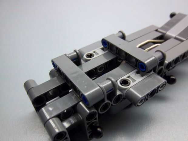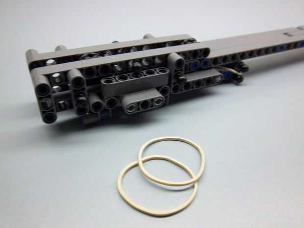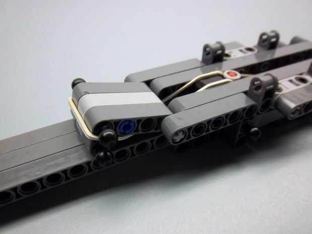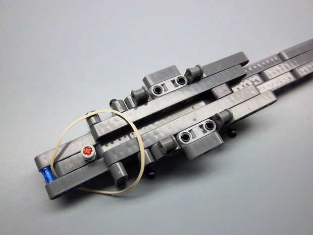 esto es una hoja oculta retractil. Todas las partes excepto la goma, llavero e hilo de rosca están disponibles en el juego de lego nxt 2.0. Por favor ignorar el color de las partes. ¡ Disfrute!Paso 1: El cuerpo This part will be strapped onto your ha