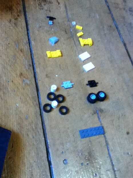 este Instructible le mostrará cómo hacer un lego impresionante ATVPaso 1: Piezas que necesita Parte cuatro llantas grandes (superior izquierda a inferior derecha), cuatro ruedas grandes, dos placas de eje baja, parrilla de dos piezas, una placa de do