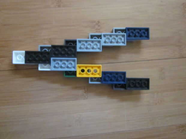 primero van meed para obtener piezas planas 8 9 y 9 ladrillos con 8 pedazos. luego ensamblarlos como se muestra.