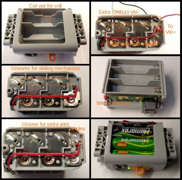 Empezar por desarmar la batería. Esto se realiza desatornillando los 2 tornillos pequeños en la parte superior y la parte que sostiene las pilas. Tendremos que modificar la parte que se deslizó hacia fuera.