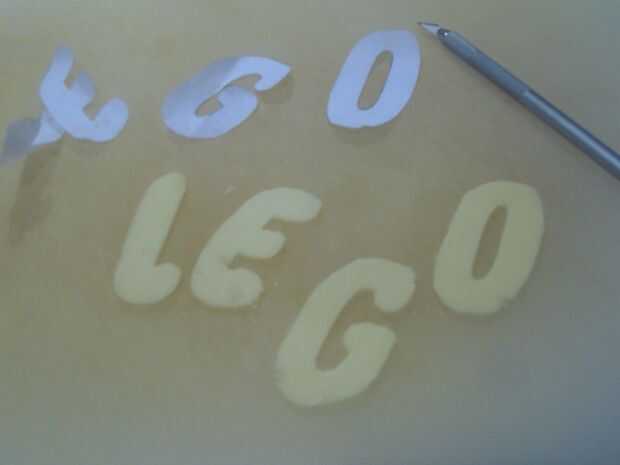 1. Imprimir 3 piezas de Lego Logos y cortar el fondo de cada uno