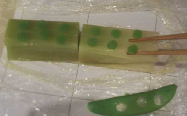 4. Introducir el puerro en el cuadrado piller. Hay un espacio, envolver el puerro con un papel de cocina para llenar el hueco. Se unen a la piller con bandas de goma en ambos bordes. Dejar reposar al menos 20 minutos