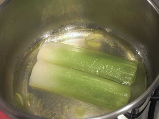 2. Agregue el agua y llevarla a hervir. Cierre la tapa y hervir suavemente durante 15-20 minutos hasta que el puerro quede tierno.