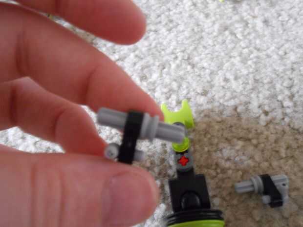 Haz una 2 ejes y un Bionicle de 2000 de la mano. Juntarlos y ponerlos en común en la bola que está en la cintura. Vuelva a colocar el perno verde claro en el 3 eje de viga media x2 y x1 agujero. Y básicamente, realmente no necesito describirlo porque la imagen ya está mostrando cómo construirlo. Derecho, sólo voy a mantenerlo simple. Las 2 fotos muestran lo que son las piezas y cómo se ponen juntos. Voy a describir algunas fotos para usted.