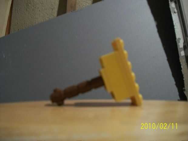 tomar una pieza de lego amarillo con 8 círculos en él y poner encima una pieza plana amarilla con 12 círculos en él. encontrar entonces algunos polos como piezas de lego para la manija.
