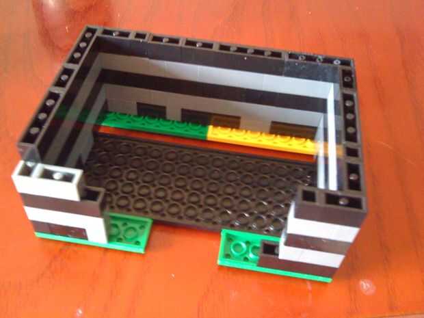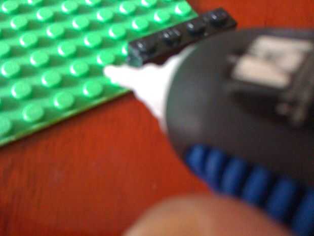 En lugar de desarmar la caja y reconstruirlo, opté por poner la tapa en la caja, tirar todo el asunto de la placa inferior, dale la vuelta y armarlo de una pieza a la vez. Supongo que usted podría trabajar desde la parte superior hacia abajo, aunque realmente quería evitar accidentalmente pegado la parte superior en forma prematura. Simplemente tirar los bloques a la vez y coloca un poco de pegamento en la parte superior de la placa inferior y los pezones en cada bloque antes de conectar el siguiente bloque. Un muy pequeño punto de pegamento en cada uno es todo lo que necesitas.