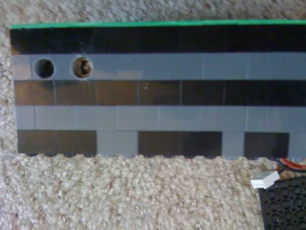 -El agujero que ves en la primera foto fue pensado para el conector de alimentación pero no cabe dónde poner el agujero porque perforé demasiado cerca a la pared lateral. Tenga en cuenta que el último bloque es la pared y el espacio no está disponible en el interior. Por suerte, tuve un LED piloto práctico que caber en ese espacio y puedo fingir que necesitaba un indicador. En retrospectiva el LED hará un fusible bueno para el aparato de 12 voltios de 12 voltios construí el caso. Quemar el LED, excepto la electrónica.