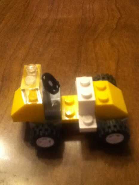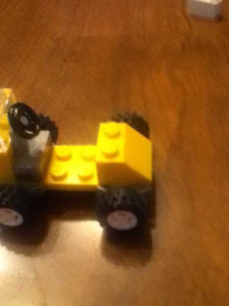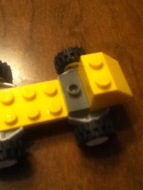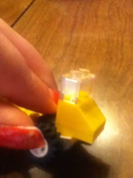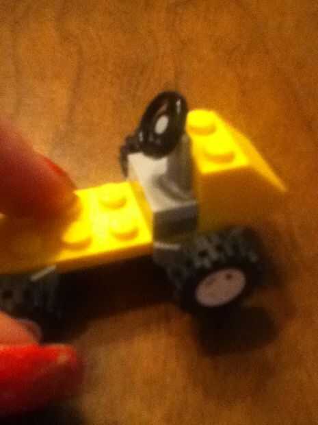 Añadir el pequeño pedazo gris entonces el volante Añadir la pieza de clara Luego la otra pieza amarillo Luego las piezas blancas Luego añadir la última pieza de la pieza tan