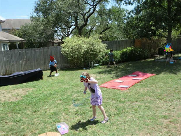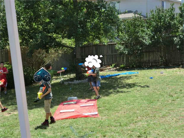 Técnicamente la lucha del globo del agua no era parte de la construcción. Sin embargo cerró la diversión del patio trasero. Hubo pastel y apertura presente en algún lugar de allí, pero otra vez, no parte de la construcción.