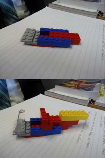 (b) Añadir en parabrisas, pieza de 2 x 4 (R), pieza de 1 x 4 (R) y dos de 2 x 6 piezas (1R, 1 año) como en la imagen para el conjunto del cuerpo completo.