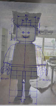 El científico en mí quiso tomar esto en serio. Encontré dibujos de planos de una real lego mini figura y se puede ver en la superposición de planos que pegué la escala bastante estrecha.