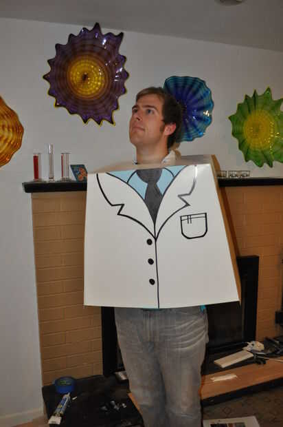 El cuerpo no estaba mal. Obviamente conseguir cartulina. Grandes cajas móviles de Home Depot funcionó muy bien. En primer lugar son nuevos así que son seco y liso. No vale la pena dumpster buceo para ahorrar $0,98. Corte la caja para que se despliega hacia fuera en una hoja plana. Dibujar la trapazoid de pecho basada en su anchura y el torso del vestido. Añadir 1-2 pulgadas en cada borde externo que te pliegan para pegar a los otros paneles. Los lados son obviamente rectángulos de cartón. Sentir su interior italiano fino sastre y divertirse con esto.